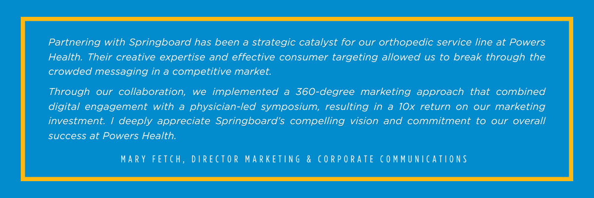 Powers Health partnered with Springboard to accelerate growth within the Powers Health Orthopedics Service Line across Northwest Indiana.